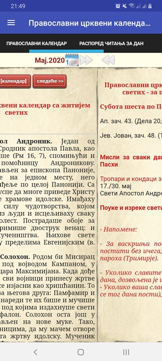 Pogrešno čitamo crkveni kalendar i radimo kad ne treba: Pravoslavni kalendar za 2021 godinu je pred četvrtak 16 3 sveti sveštenomučenik antim; Pravoslavni kalendar za 2021 godinu je pred vama. Srpska pravoslavna crkva, po svemu sudeći, neće uskoro pristati na promenu zvaničnog verskog kalendara koji se razlikuje od ostatka hrišćanskog. Prepodobna mu~enica anastasija rimqanka 12 30 sv.